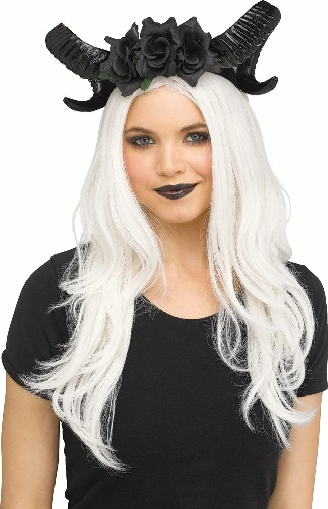Transform into a magical and mystical creature. The Black Horn Headpiece with Flowers is the perfect way to add a dramatic effect to your gothic, mythical or fantasy character look. The Black Horn and Flowers Headpiece includes a headband with black curvy