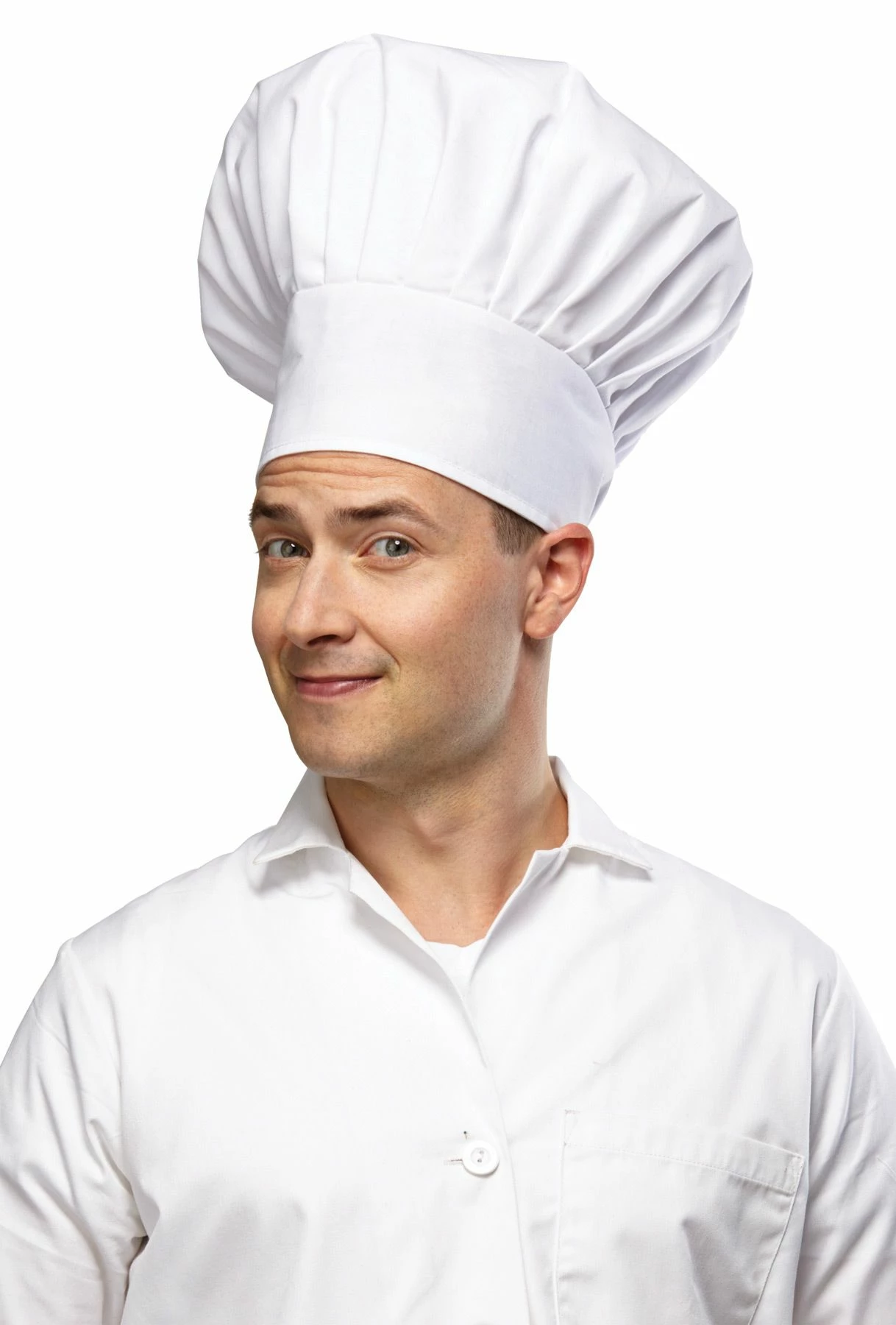 Authentic oversized chef hat made of cotton twill. Looks very professional! One size fits all.
