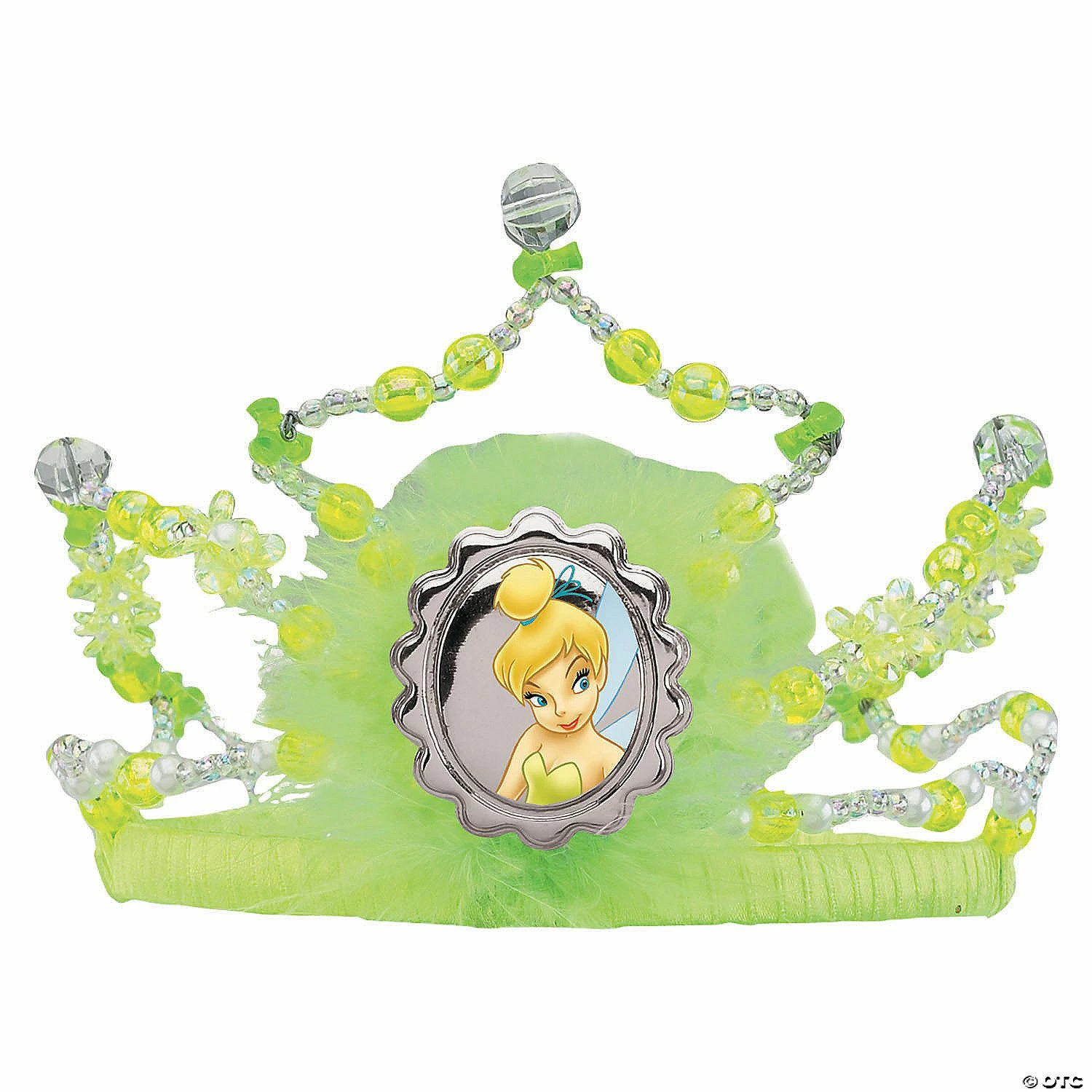 Lovely sequin and feather tiara with Tinker Bell cameo art logo. Plastic.